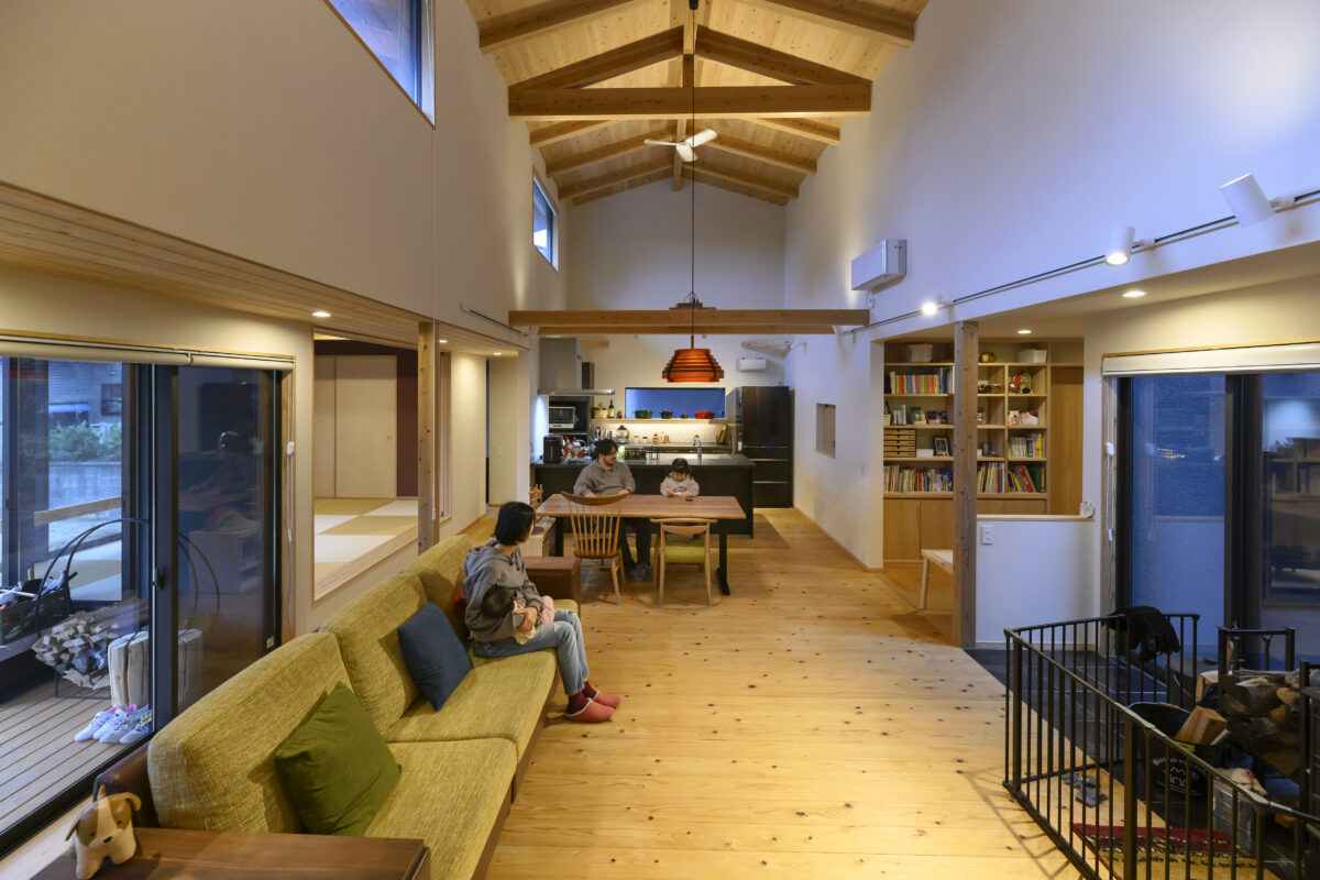その内側にあたたかく広がる伸び伸びと暮らせる空間を設計しました。