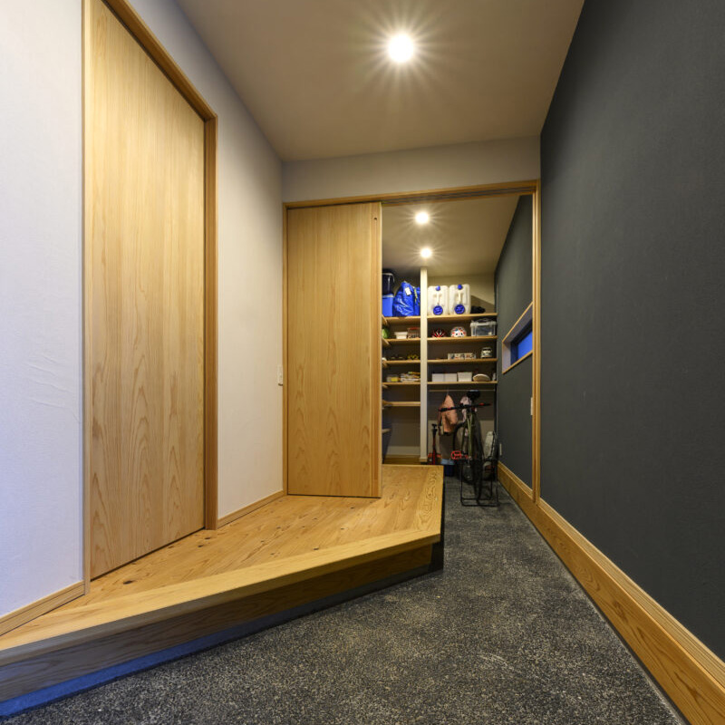 収納もたっぷりと用意された玄関。