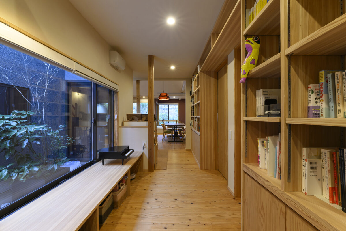 中庭からは家族の姿が見え、別室にいても自然とコミュニケーションが取れる。うつろいゆく季節と共にお子さんの成長を見守っていけます。