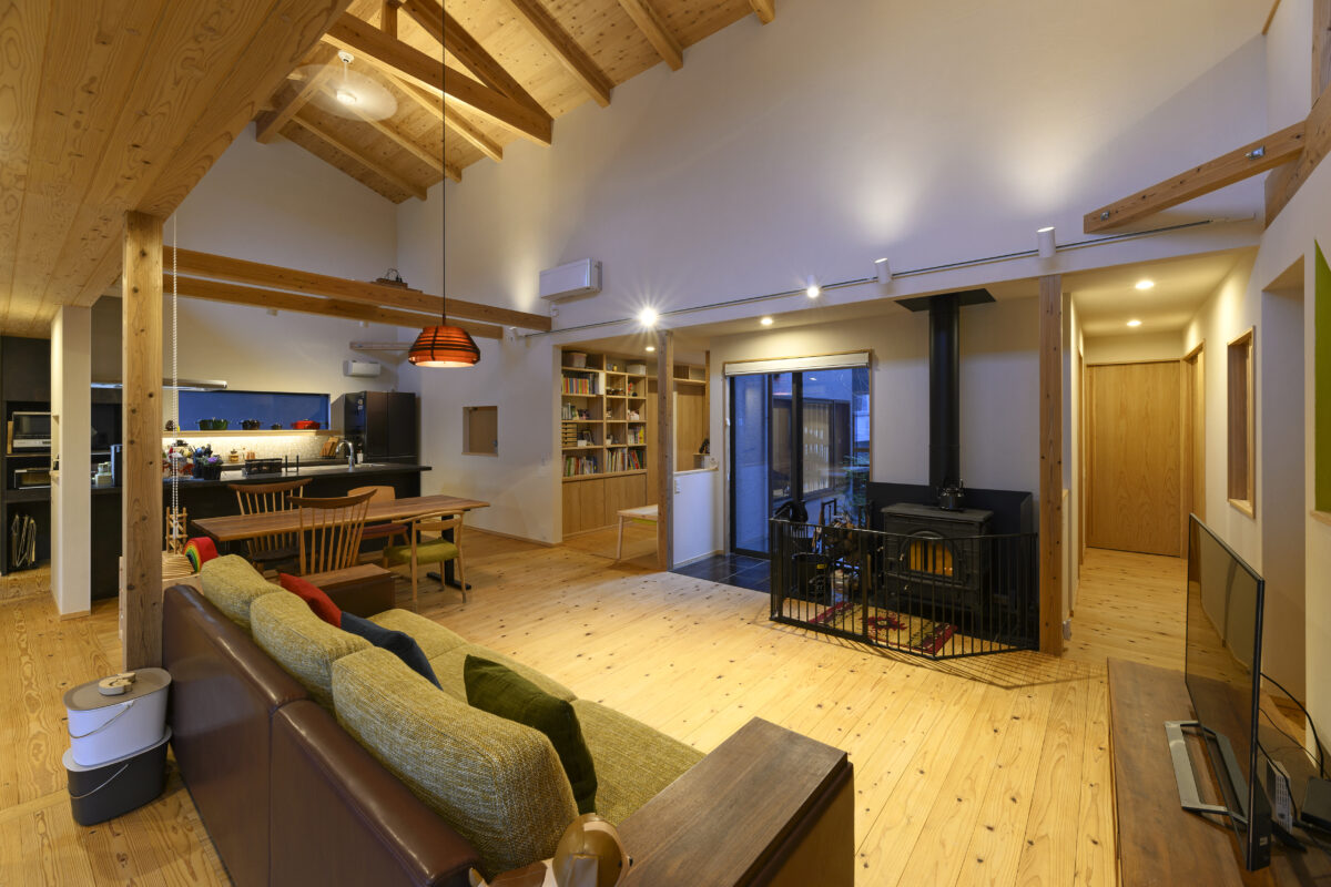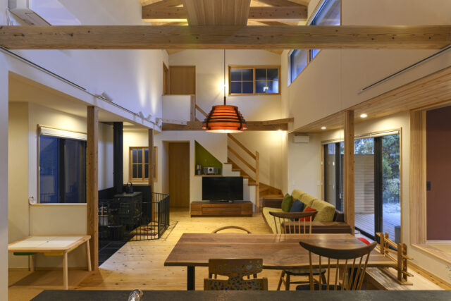 外に出る機会が少ない今、家は住む為だけの場所ではなく、楽しむ為にある。 寒い日に薪ストーブを囲んで暖を取ったり、あたたかい日にウッドデッキでバーベキューしたり、時にプロジェクターを使ってホームシアターなど日常が楽しくなる工夫が詰まっている。